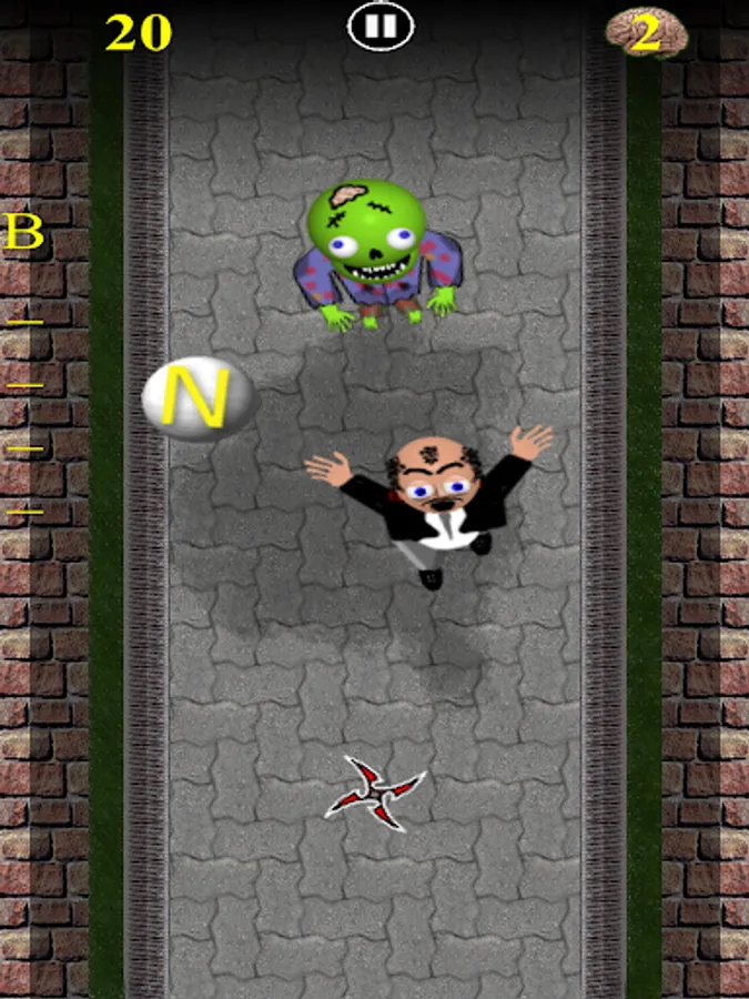 Occasionally appearing balls with letters that change, you should try to make the word "BRAIN" for extra brain.