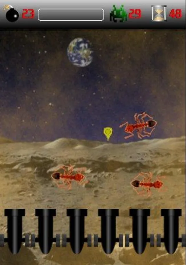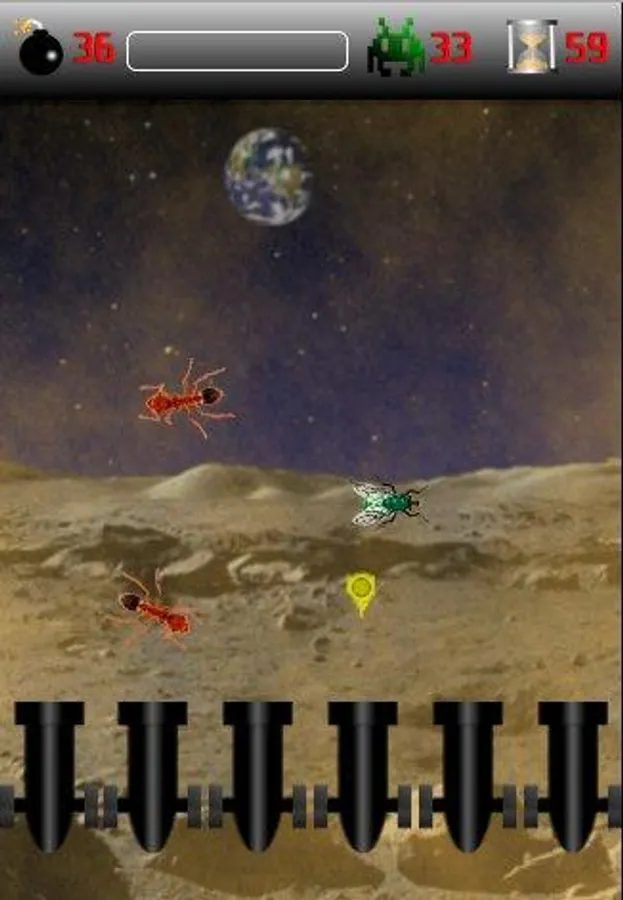 There are totally 7 planets more than 60 levels waiting for you to challenge. With the progressing of the game, it will become more and more difficult and the speeds that insects move are faster and faster. Be attention, something on the screen you can’t bomb with cannon or you will fail. It’s a testing for your reflection and accuracy.