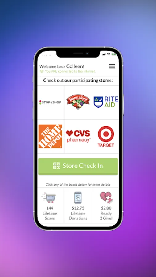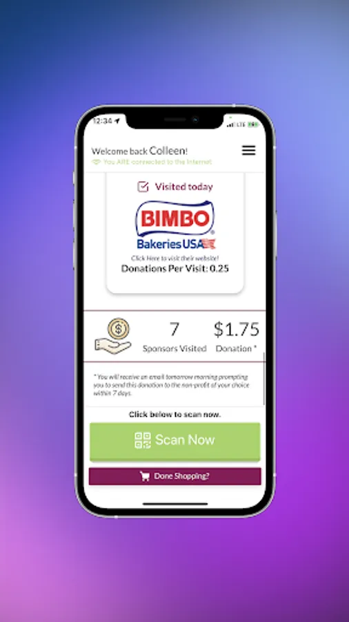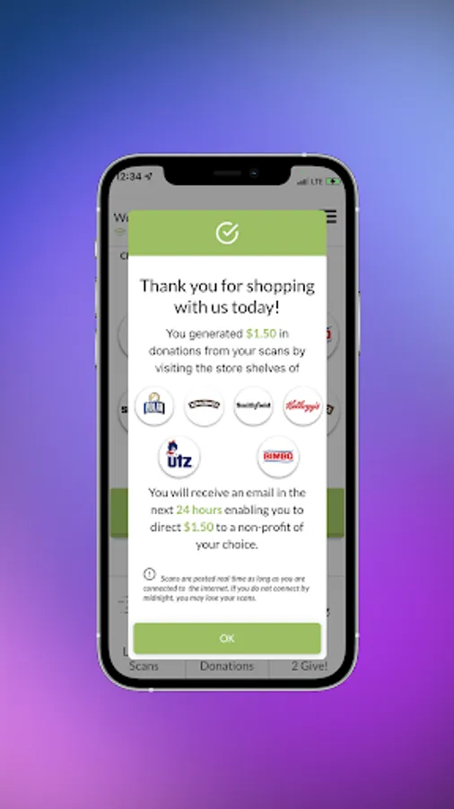 4. After scanning the QR code at your local participating supermarket, and scanning the QR code of our in store sponsors, you will be able to send a donation to a local non-profit of your choice within 7 days!