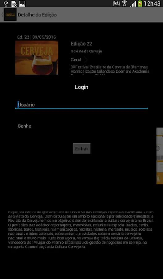Stay on top of what happens in the universe of special and craft beers in the Journal of beer. With circulation nationwide and quarterly, the Journal of Beer aims to defend and spread the brewing culture in Brazil. The journal brings the reader reports, interviews, specialized columnists, profiles, factories, bars, festivals, attunements, recipes, history, market, music, national and international routes, collecting, news about the national beer scene and more. All this now, in the digital version of the Journal of Beer, winning the 1st place in Brazil Brau Award for business management in beer, in the Communication category Brewing Culture.