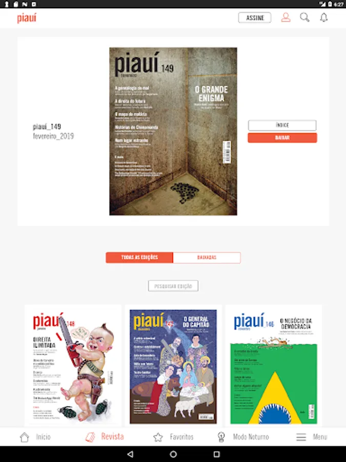 The new magazine application brings together all the content of piauí in one place. We've added the monthly editions, reports and reviews published on The Piaui Herald's website, podcasts and posts.