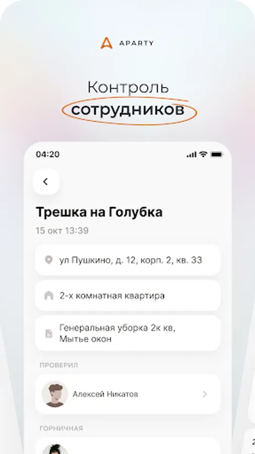 ✔️ Aparty следит за качеством уборки квартир и упрощает контроль. ****
