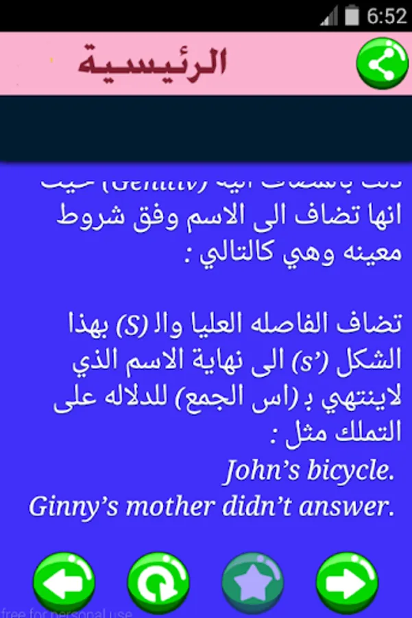 Many rules contained in the application let you see only a few sample of them in the images attached to the application on the store and let you download it to find the beginning of many other wonderful lessons and annotated in Arabic without the Internet to learn quickly.