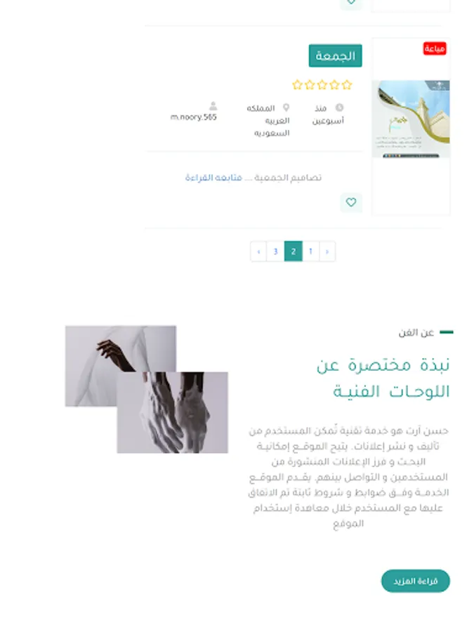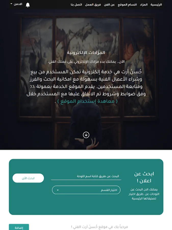 Hassan Art is an online service that enables the user to buy and sell artworks easily with the ability to search, sort and follow users. The site provides the service with a commission of 10% according to the terms and conditions agreed upon with the user during the (website use treaty).