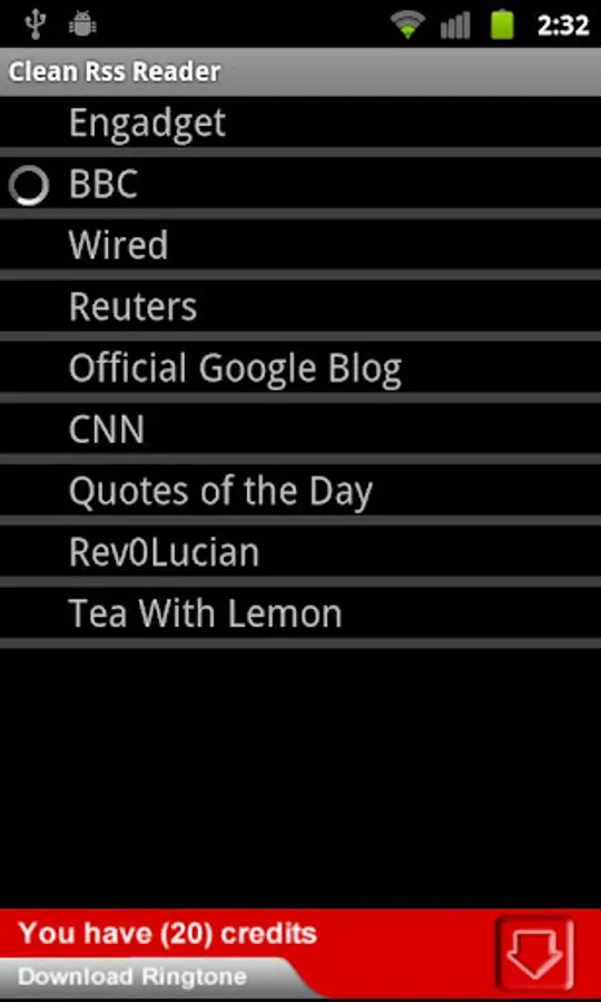 Clean RSS is a simple, fast, easy to use RSS reader. Add, Edit, Delete feeds. Refresh all or one at a time. Pre-populated feeds can be deleted. There is a View Online option to launch a browser to see the selected article.