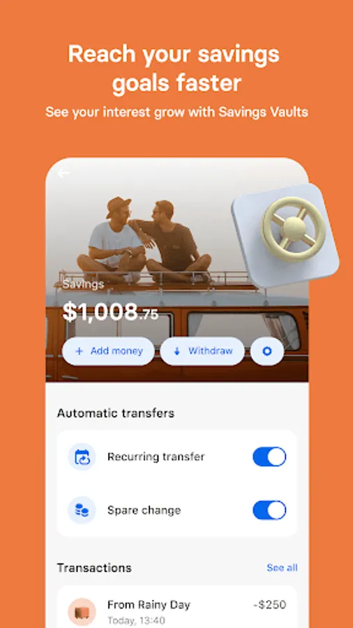 - Set money aside with spare change roundups and get up to 4.25% annual interest, paid monthly*