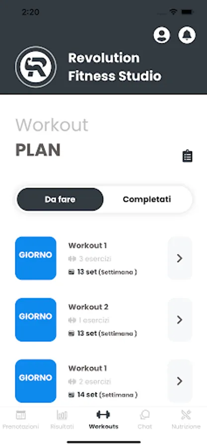 Revolution Fitness Studio is the platform that allows you to have all the functionalities inherent in coaching and online coaching. You will be able to interact with me to receive useful feedback on your training program, monitor your progress and share them by speeding up the times and having everything directly on your smartphone.