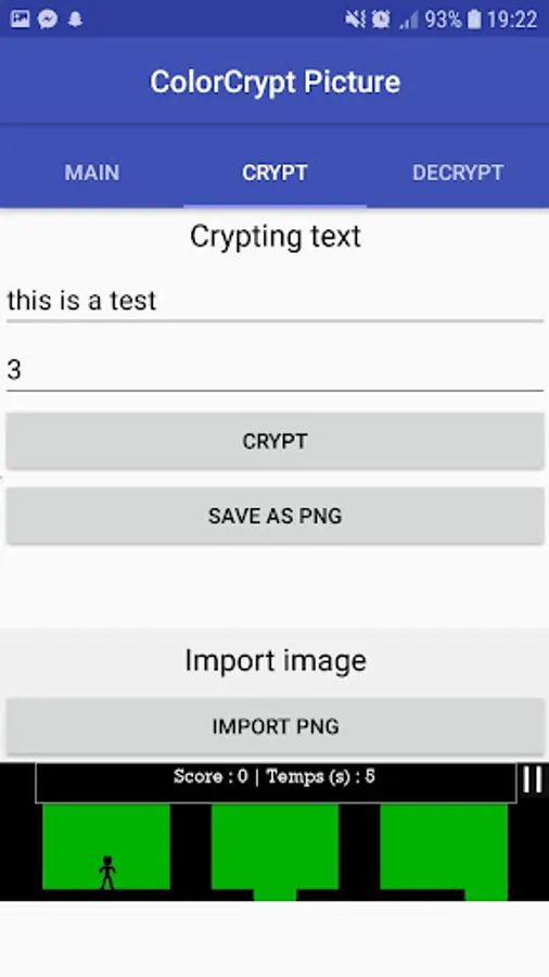 ColorCrypt Picture is an application that will permit you to change some text into a few pixels and will allow you to hide them into a chosen picture, that you'll be able to decrypt using the same app ! Want to remember a password but don't want to write it on a paper anybody could have access on ? This app might be made for you. Your data will stand here and you'll have to do to recover it is using this same app.