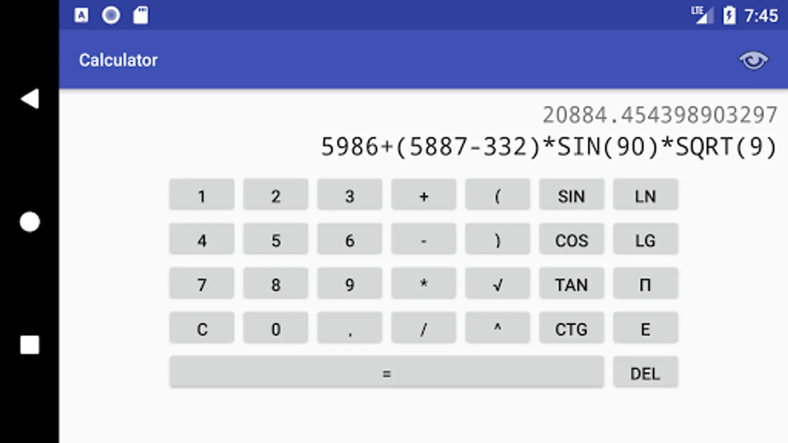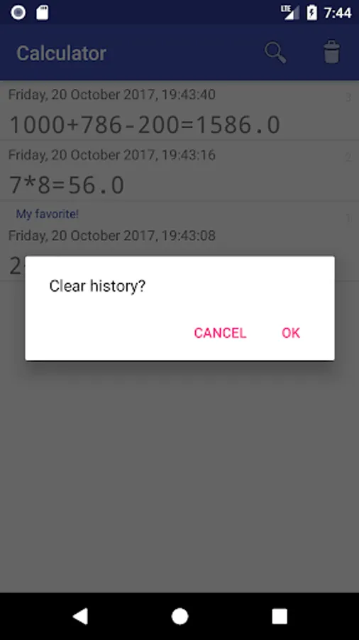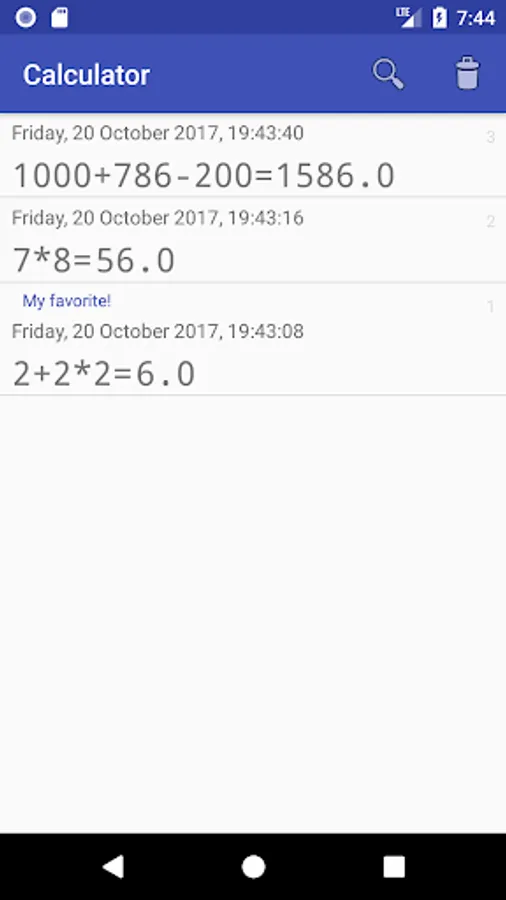 This calculator remembers all the calculations that he had ever committed. You can make comments on the most necessary calculations, delete unimportant calculation of history and clear the history. There is a search for the calculations or comments. It supports all basic math functions, and in extended mode (in landscape orientation) are also available, some logarithmic functions, and parentheses.