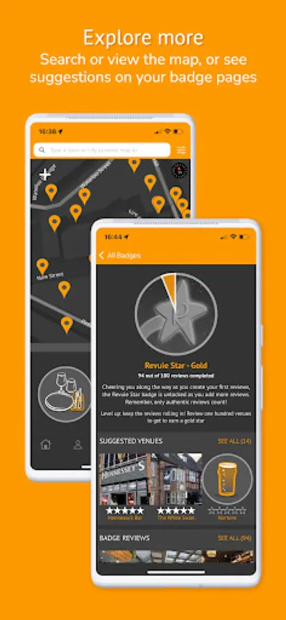 As you create reviews you'll earn badges, and these will help you find more venues to try. Our core badges cover pubs, bars, cafes, coffee shops and delis - along with themed and area-based badges to help you track down your next favourite venue.