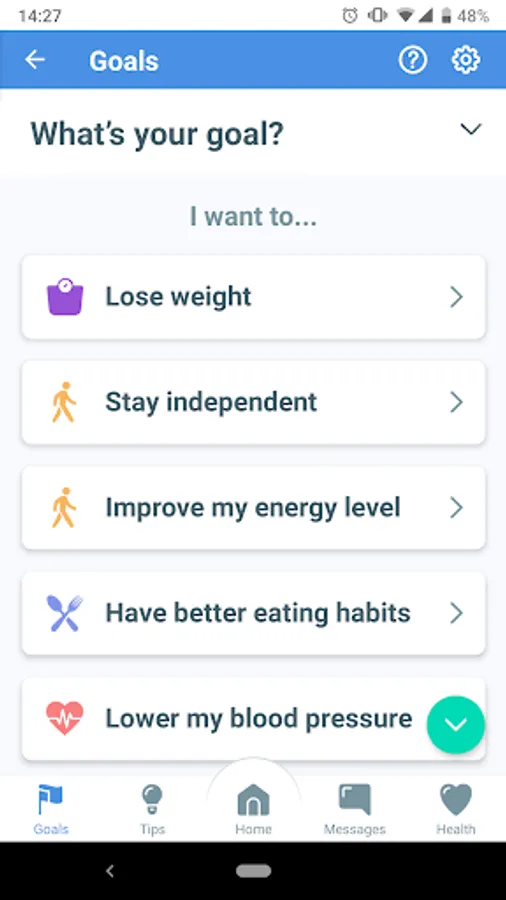 - Set your personal health goal
