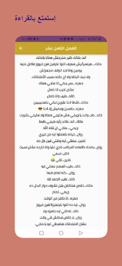 This application is characterized by being easy to browse and read. You can also share the application with friends. Easy and comfortable reading and writing. Easy navigation between the chapters of the narrator.