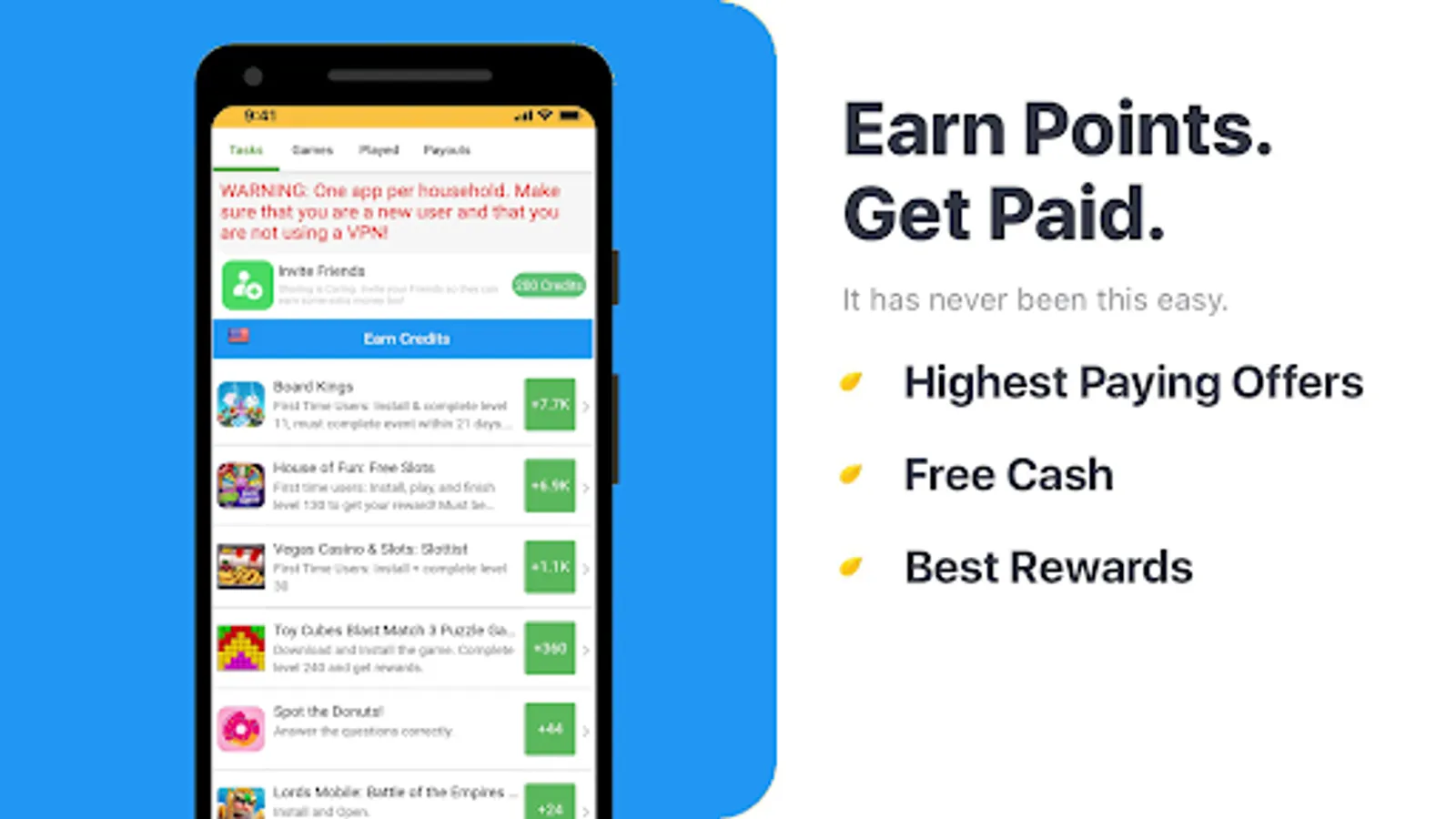 Earn cash rewards and gift cards by completing simple tasks with only a few taps.