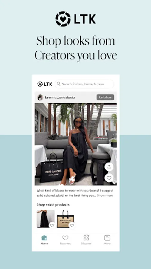 Download the LTK app now, check out our new look, and then shop millions of products across fashion, home, beauty, kids and more—all styled by real people. Whether you’re looking for new creators to follow, the perfect pair of ankle booties, or the couch of your dreams, it’s all here on the LTK App (formerly LIKEtoKNOW.it). Here’s how it works: