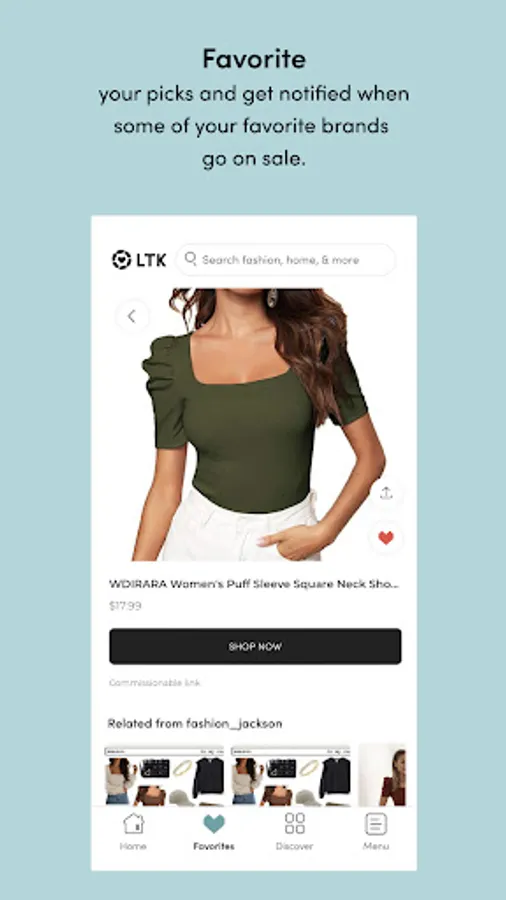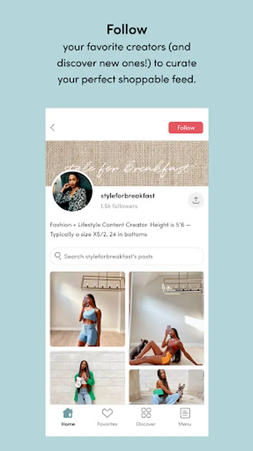 - FOLLOW your favorite creators (and discover new ones!) to curate your perfect shoppable feed.