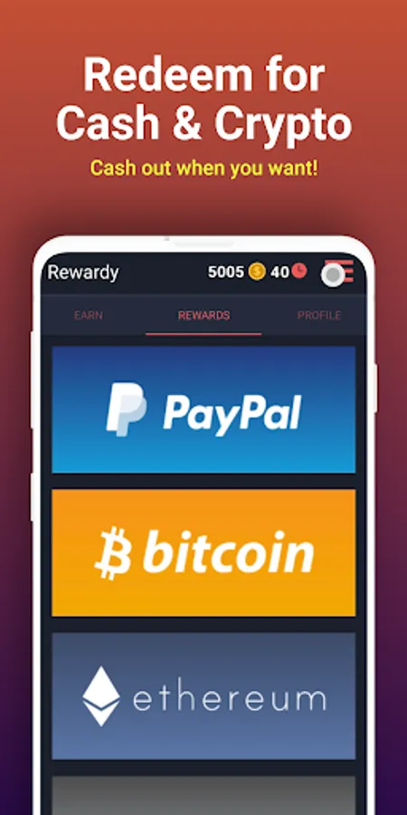 3️⃣ Redeem your points for PayPal, Bitcoin, Ethereum, Litecoin or Gift Cards like Amazon, Steam and many other rewards.