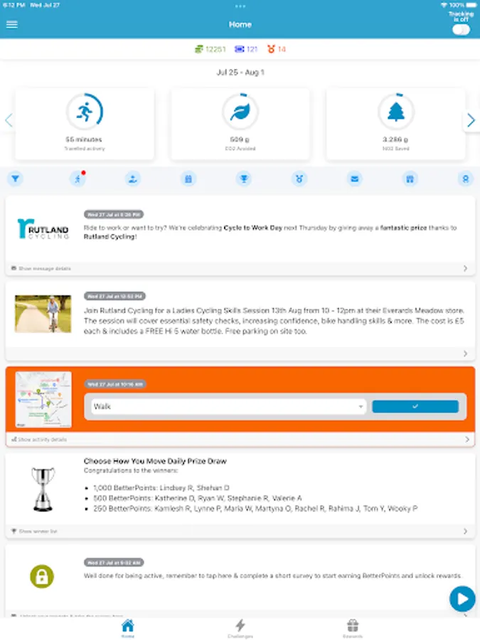 The BetterPoints app is the home of programmes designed to motivate people to behave more healthily and sustainably, such as walking, cycling, and eating better.