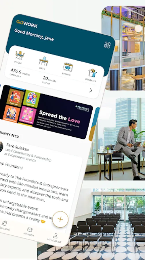 The GoWork App allows you to connect with our community of creators, entrepreneurs, and business leaders. Get help, book workspace, events, conference rooms, and more. Get connected with thousands of like-minded people.