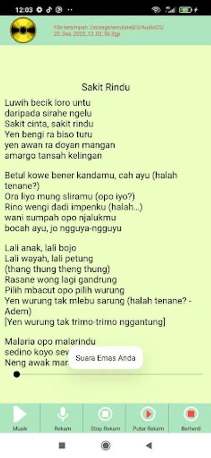 You don't need to worry about forgetting the lyrics because in this offline campursari karaoke application we include the lyrics so all you have to do is choose your favorite campursari song.