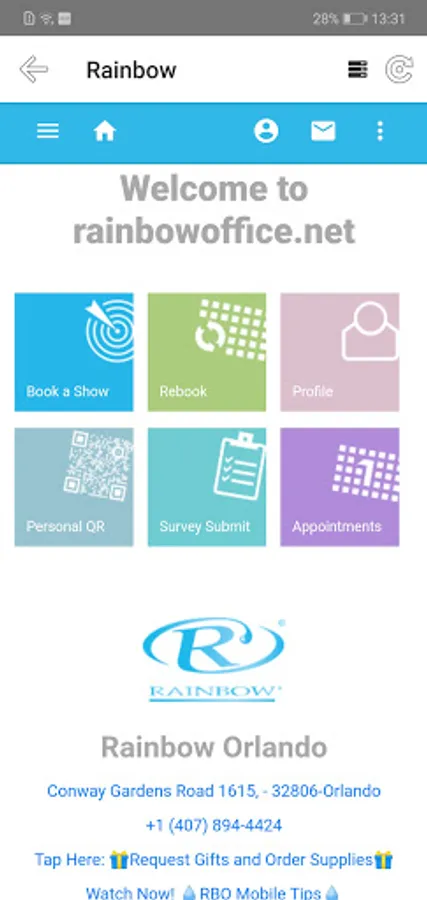- Rainbow Client: Book a Show, Rebook, Profile, Appointments, Messages