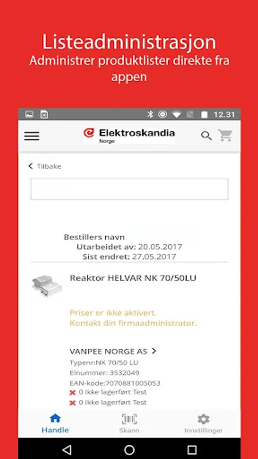- Register users for access to Elektro Skandia webstore