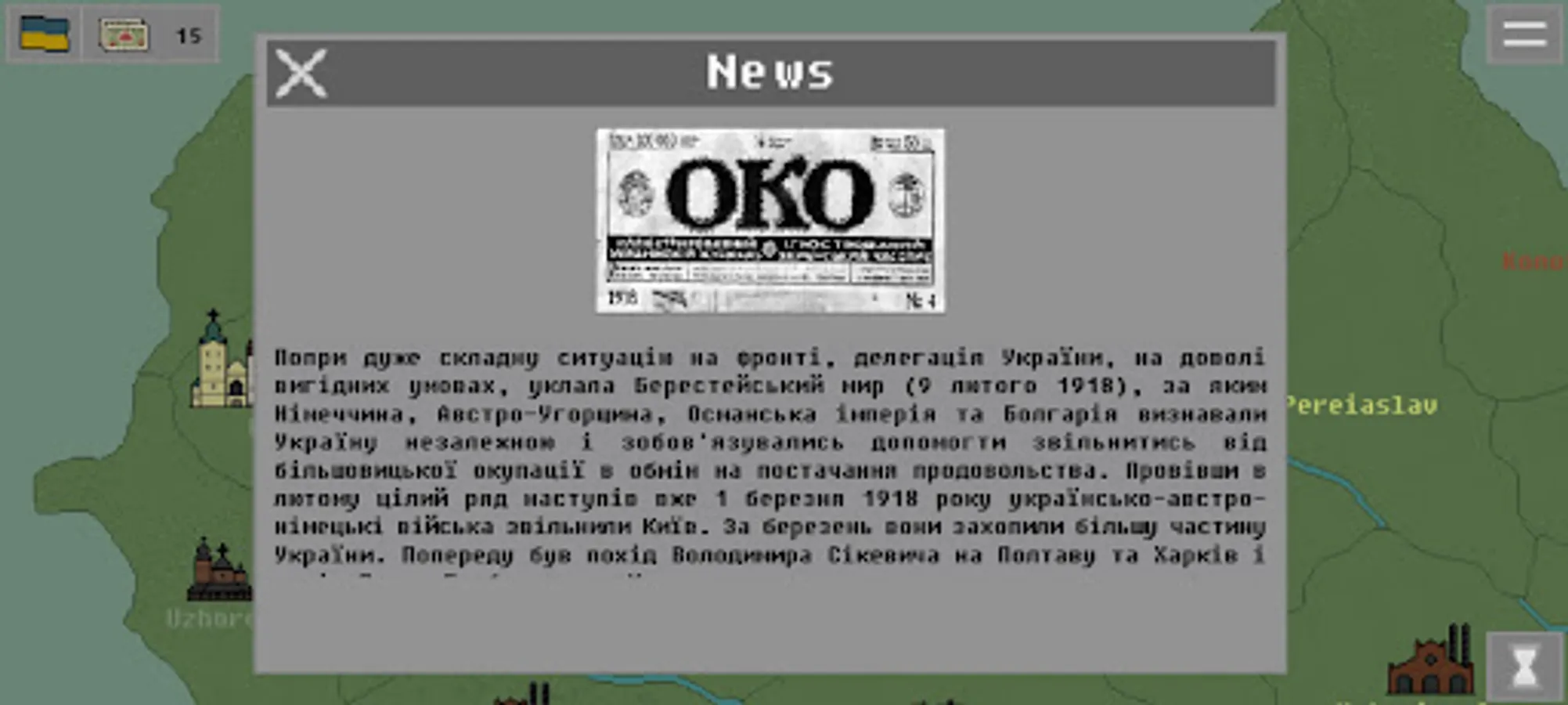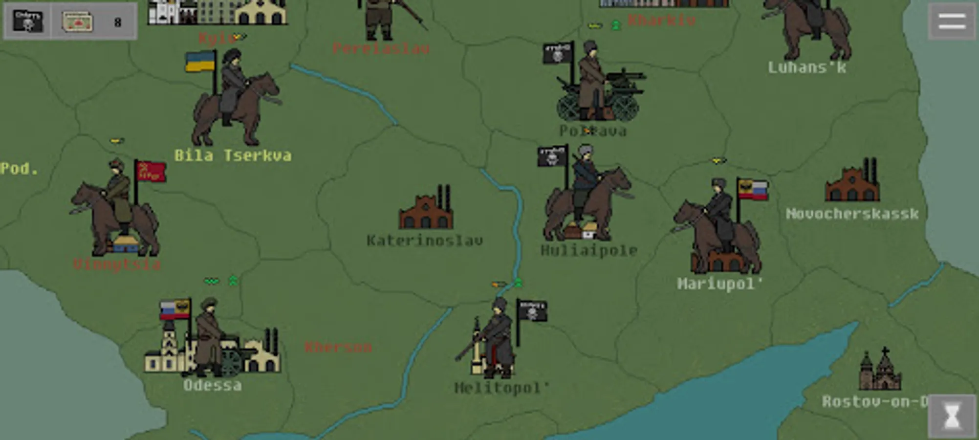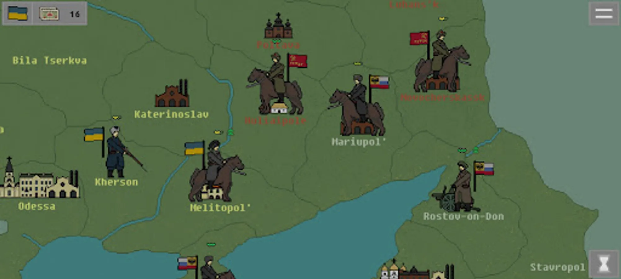 The player can play for the Ukrainian People's Republic, the Crimean Democratic Republic, Poland, the Anarchists, Austria-Hungary, and the German Empire. Each country in the game has its unique set of units with special characteristics (attack power, health, price, and the number of moves on the map per turn), which makes the game for different countries more diverse and interesting.