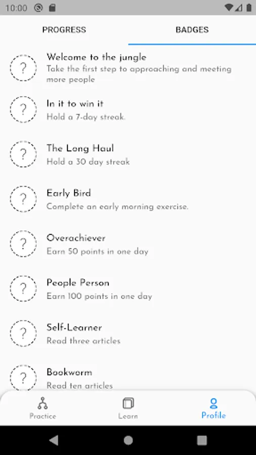 Approach Builder takes a new approach to meeting people. Through the app, you'll be able to accomplish daily exercises and learn through multi media lessons. The progress is purposefully slow and steady so no matter how uncomfortable you are approaching others you'll be able to overcome fears and anxieties with enough time.