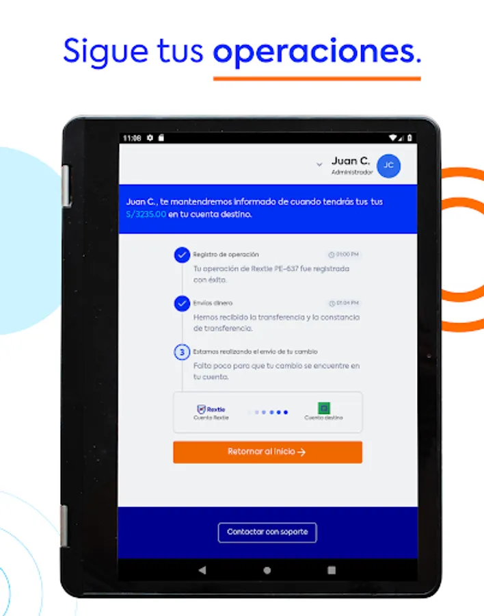 Rextie allows you to change dollars as a person or company in 3 simple steps, so that the user can receive their money changed in just minutes.