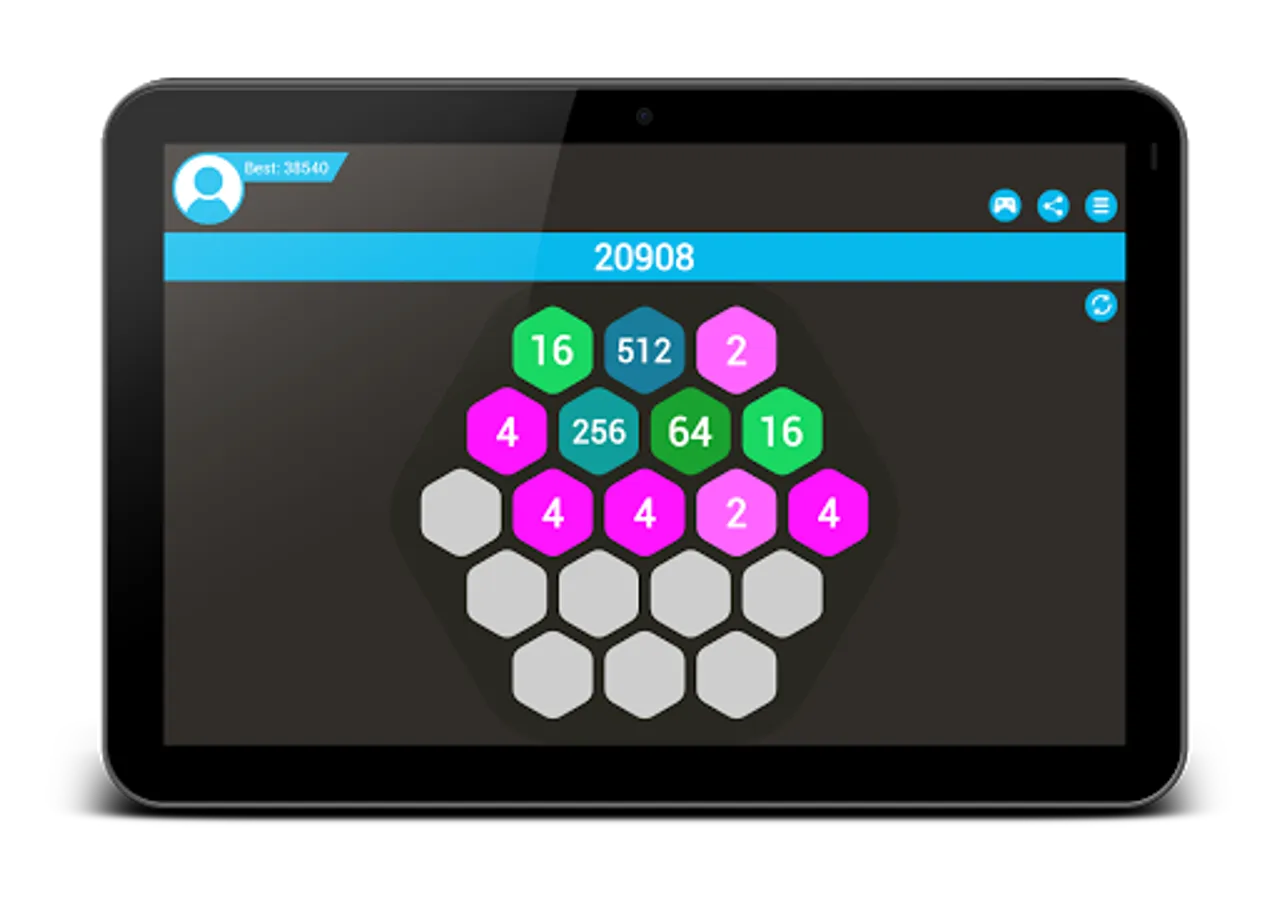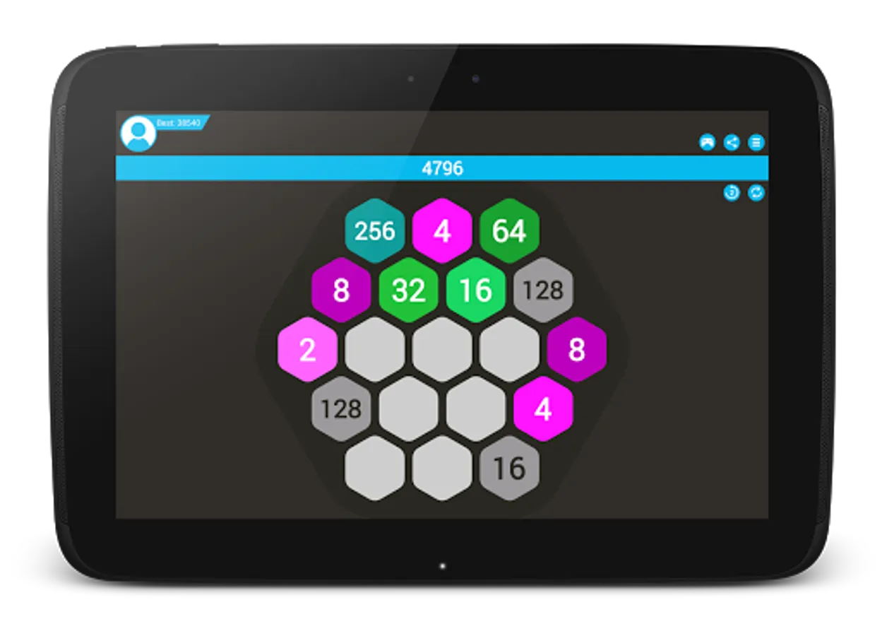 Most addictive mobile game 2048 with more features and challenges. Added many new gameplay elements like hexagon playboard, 6 ways move, block tile, ...