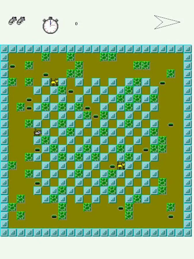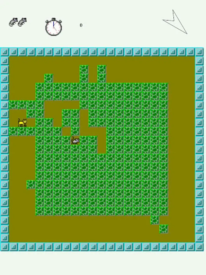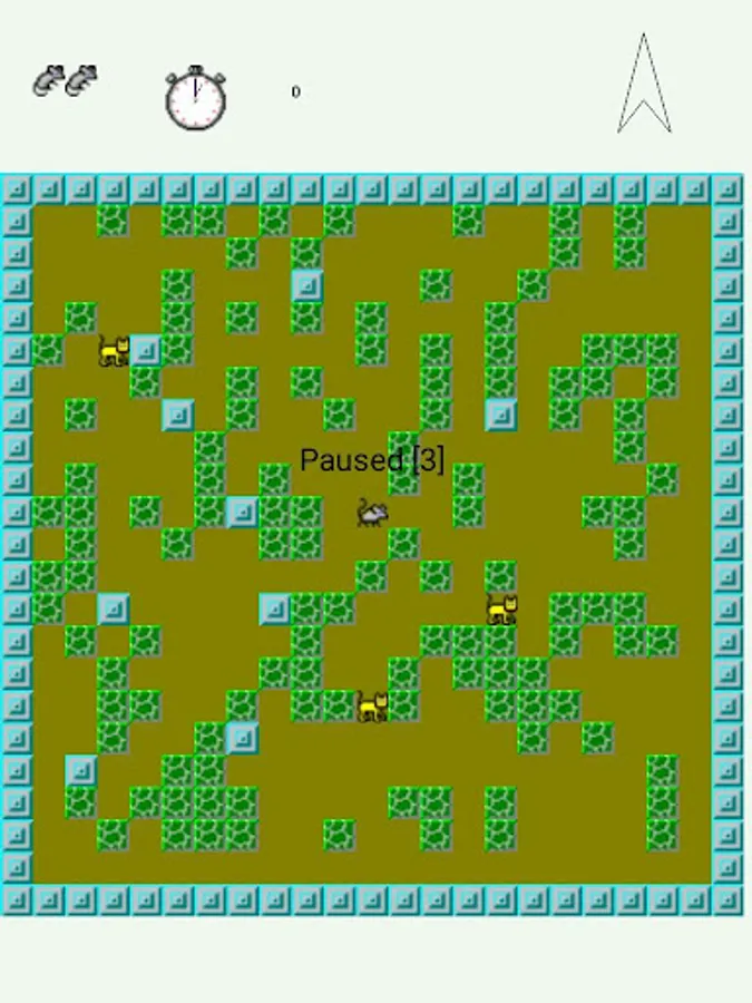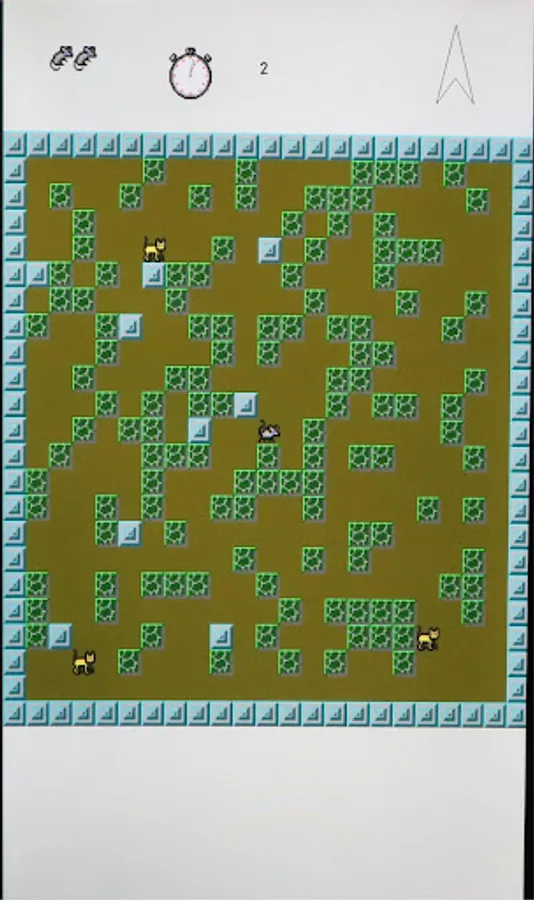 The classic cat and mouse rivalry game play you may remember from the 90s, including diagonal moves. No buttons, just swipe the touch screen to move the rodent, in your quest to surround a set of relentless and aggressive cats by means of movable bush like game pieces! (Physical keyboard also supported) It is a subset of the game Rodent's Vengeance for Android and is intended to give the user an opportunity to try out its shared eight direction touch screen swipe interface. The touch interface does require practice and discipline, but I believe that not having to constantly look down at screen buttons or keyboard makes it the best possible option for supporting diagonal moves.