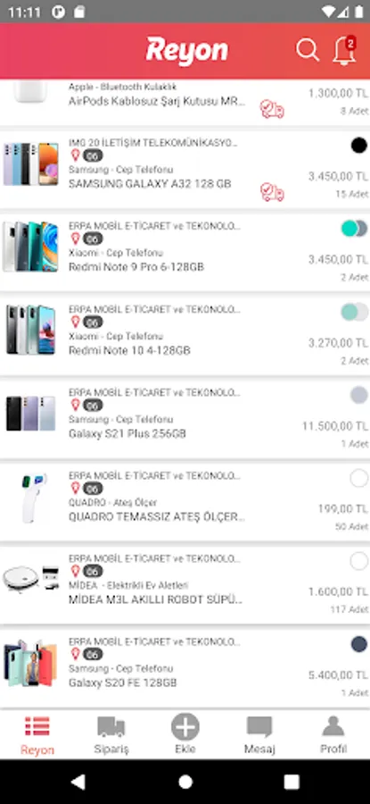 Reyon application within Erpa Mobil; while bringing companies together with the right product, the right seller and the right price; It is a shopping platform that makes it possible to supply technological products such as mobile devices, computers, tablets, which these companies need, in line with the desired budget. Reyon, which works as the reference center of the rapidly growing e-commerce sector in Turkey; operates as a platform that enables reliable and practical shopping with its "Cepte Trust Certification". Reyon application, as a "Mobile E-Trade Company", makes B2B secure trade.