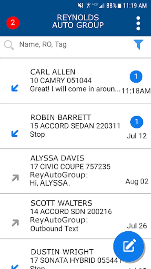 ReyText from Reynolds and Reynolds allows dealership personnel to engage with customers through text messages. For example, employees can text vehicle service updates to customers, follow-up with a sales lead after a test drive, or let a customer know when his vehicle repair is complete. Designed and built as part of Reynolds Retail Management System, ReyText stores conversation history with the customer profile to maintain a relationship throughout the ownership experience. ReyText also enhances productivity and efficiency as employees are no longer tied to workstations when communicating with customers. This mobile application gives users the functionality of standard text messaging applications, while offering the elite security and capabilities of operating within Reynolds Retail Management System.