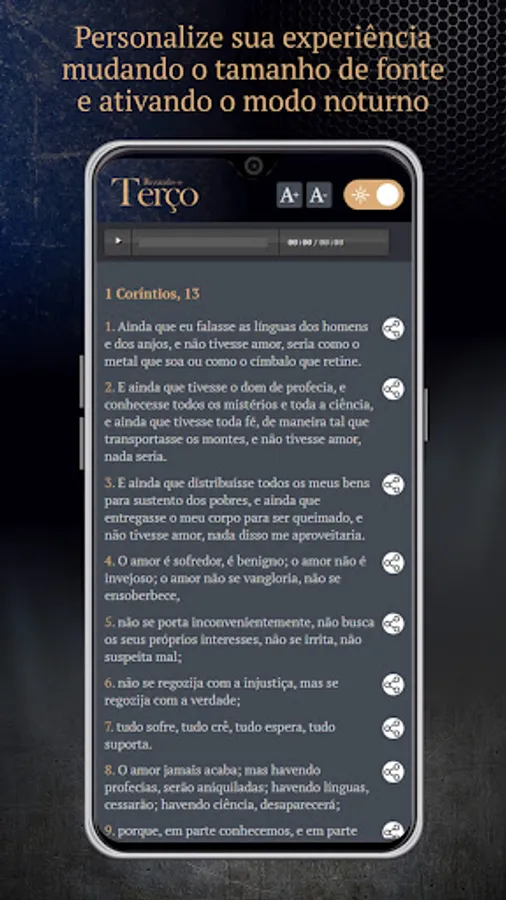 This application was developed with the aim of bringing faith and spirituality closer to all of us. We offer a unique and enriching experience for all those who wish to strengthen their faith through praying the Holy Rosary. With an intuitive and easy-to-use interface, you have access to a wide range of features that will enhance your experience of praying the Rosary. Faith is strengthened when shared, so the application has features for sharing verses and prayers in the form of cards, for your favorite social networks.