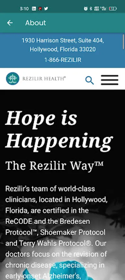Rezilir's team of world-class clinicians, located in Hollywood, Florida, are certified in the ReCODE and the Bredesen Protocol™, Shoemaker Protocol, and Terry Wahls Protocol®. We focus on the revision of chronic disease, specializing in early-onset Alzheimer's, Dementia, MS, autoimmune, ME/CFS, cognitive decline, brain fog, and Chronic Inflammatory Response Syndrome (CIRS).