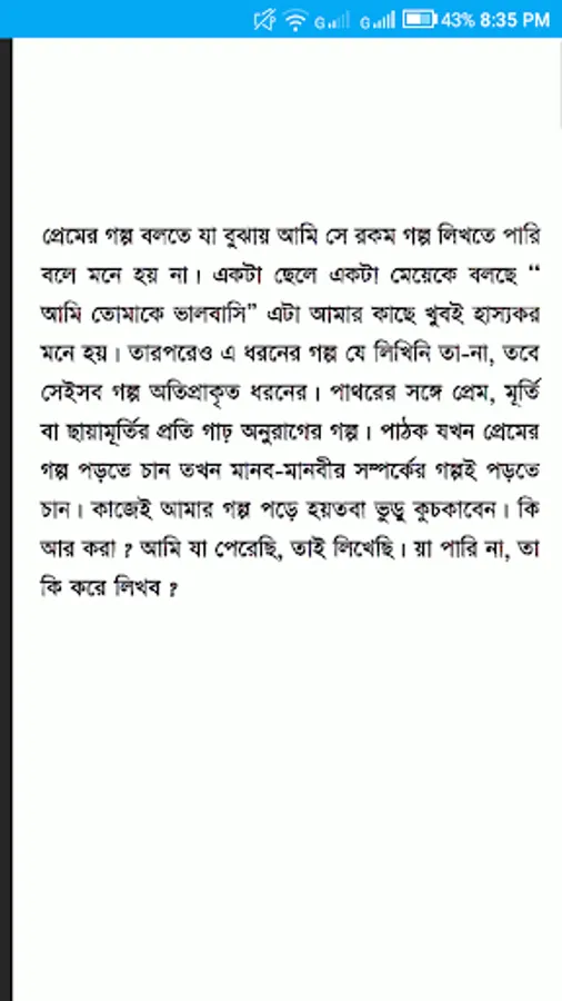 প্রেমের গল্প বলতে যা বুঝায় আমি সে রকম গল্প লিখতে পারি বলে মনে হয় না।
