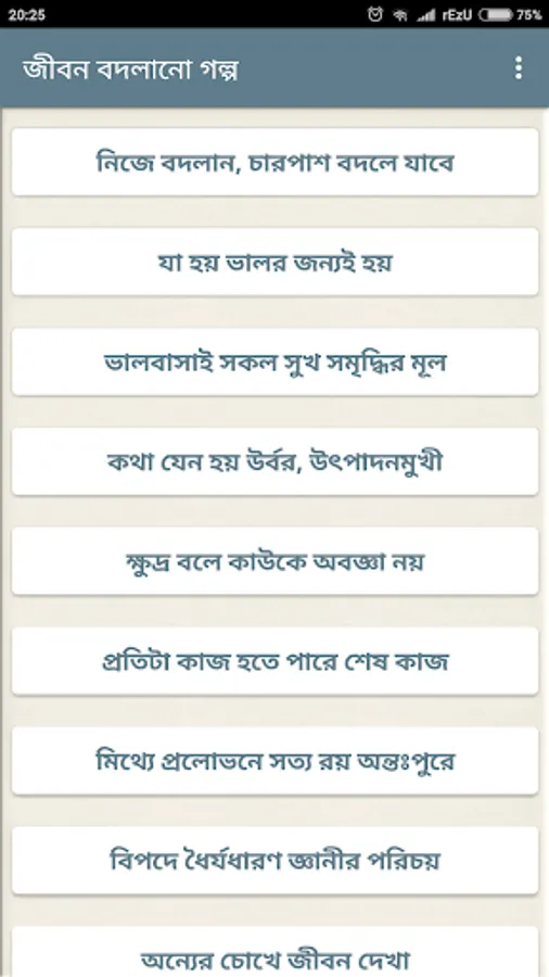 জীবন বদলানো শিক্ষামূলক গল্প ও ঘটনা ~ Golpo kahini এই এ্যপটিতে পাবেন জীবন বদলানো ও শিক্ষামূলক অনুপ্রেরণামূলক সব ছোট বাংলা গল্প। যা আপনার জীবন বদলে দিবে। গল্প পড়ে দৃষ্টি ভঙ্গি বদলান জীবন বদলে যাবে।