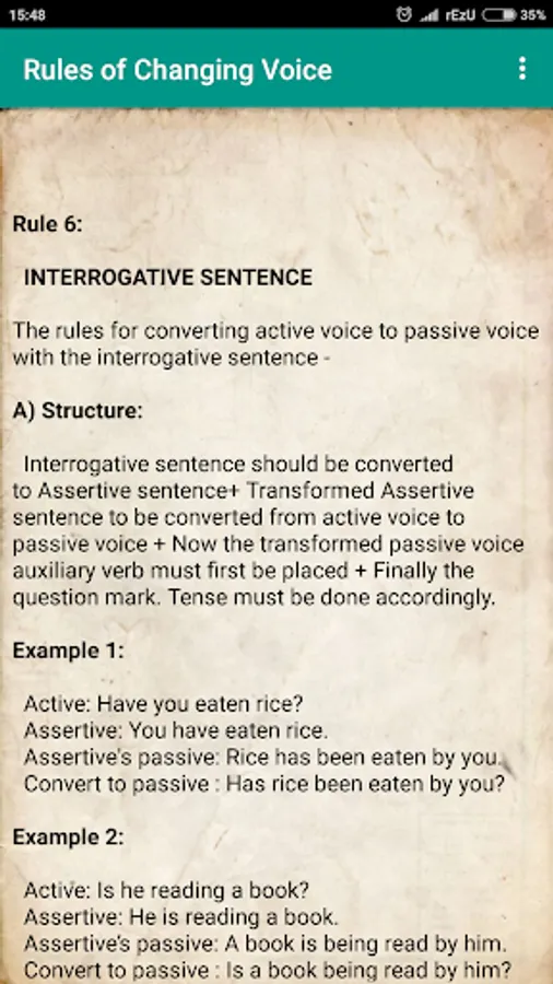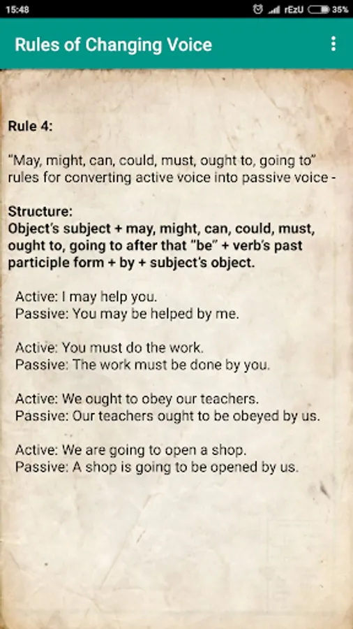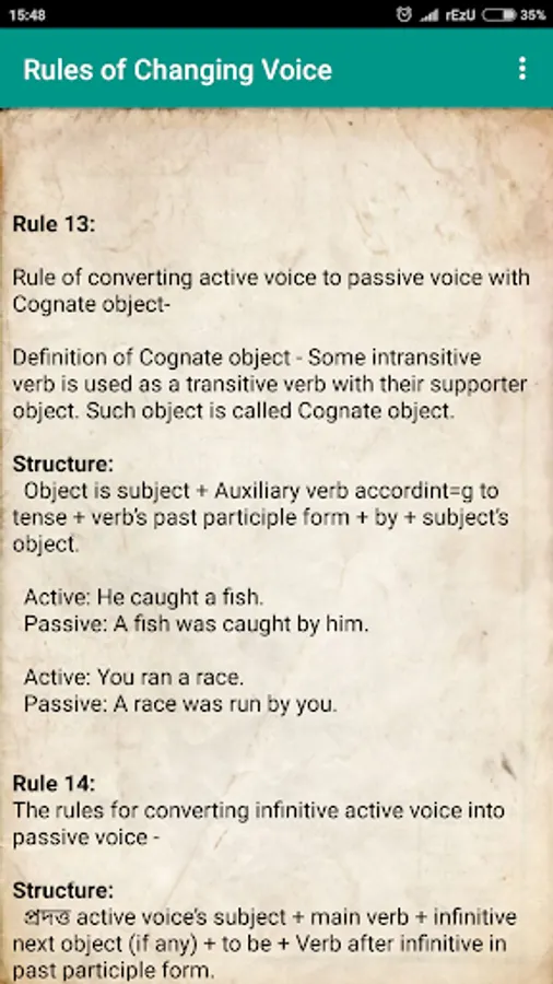 In this App you get the rules of changing voice Active voice to Passive voice.