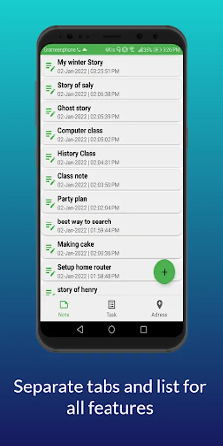 Yes! ‘My note’ is a very user-friendly note app as this app uses separate tabs for its features. App has 3 tabs - Notes , Task list and Address List so that you don't get confused or messed up while writing.