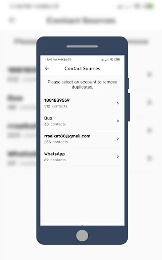 After contacts scan, you can select from list accounts to remove duplicate contacts. The deleted contacts will be exported to a .vcf file on your phone storage, in case you need to restore it.