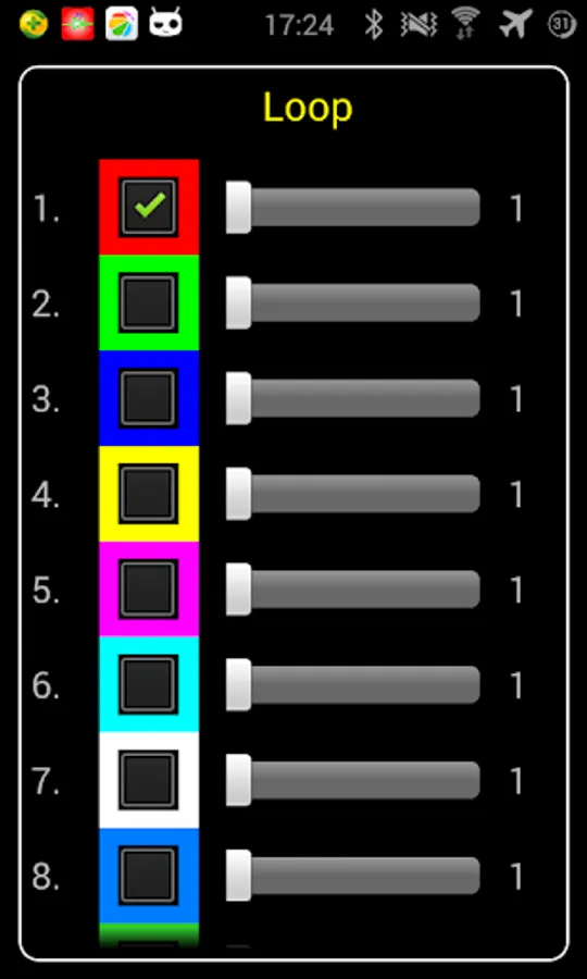 For example, if you select 5 color from the list, then it will flash the preset times between the selected 5 colors only, and delay the preset times for every cycle. You can still change the looping speed from the loop bar.