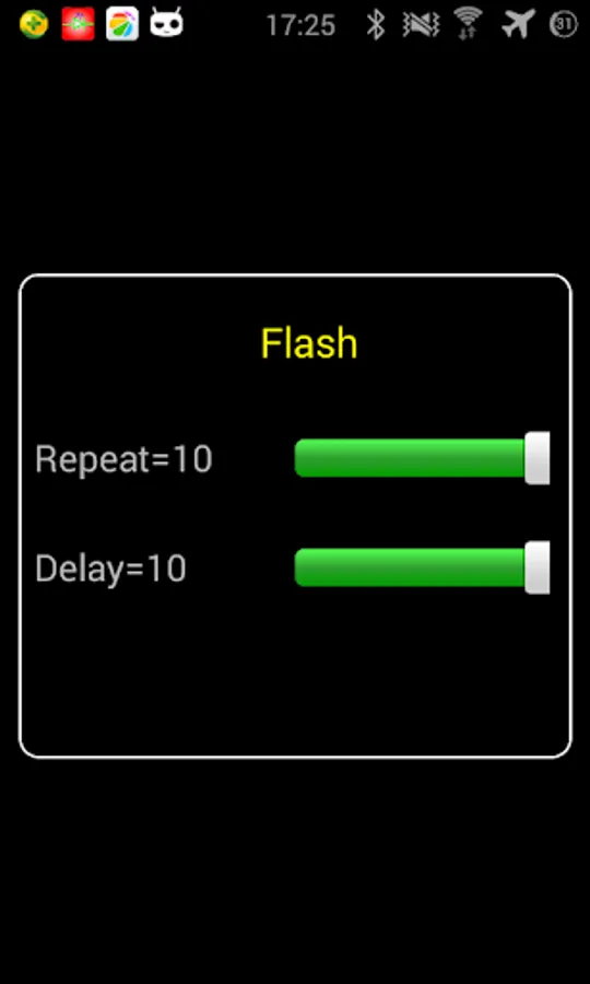 For example, if you preset repeat=3 & delay=2, then it will flash 3 times each time and delay 2 seconds. You can still change the flashing speed from the flash bar.