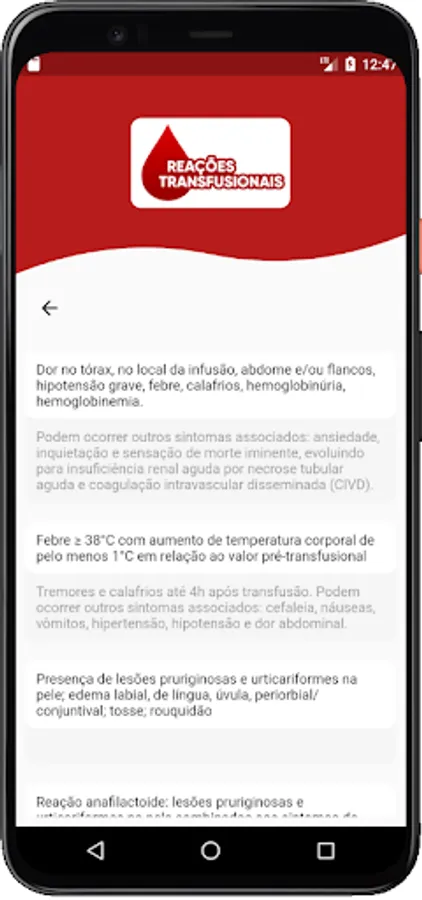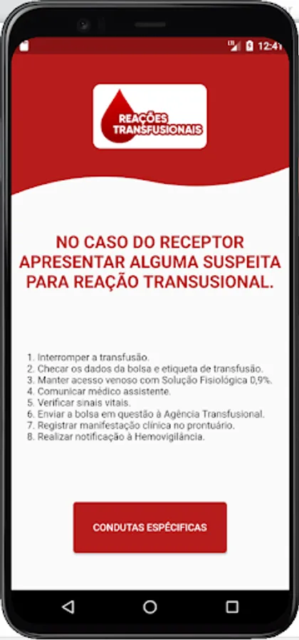 This app had its design developed as a product of the dissertation entitled: App design development on identification and conducts in transfusion reactions, approved by an examining board, for the Professional Master's Degree in Health Management at the State University of Ceará - MEPGES-UECE in 2021, by the authors Francisco Daniel Rodrigues da Silva (student) and prof. Dra. Raquel Sampaio Florêncio (advisor professor).