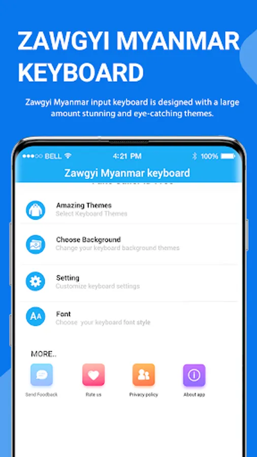 ★ Different themes are designed with color combination and Stylish theme is a colorful Zawgyi Myanmar keyboard which has transparent theme wallpapers Select theme that suit you