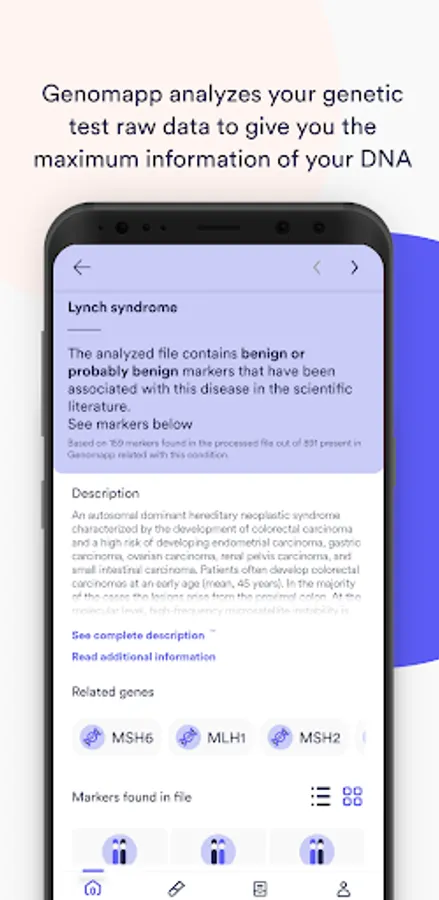 Please note that Genomapp is NOT for diagnostic use, it does not provide medical advice and is not a substitute for it. Consult your health care professional if you have any questions.