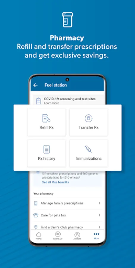 Save time and shop easier every day with the Sam’s Club app. Make the most of your membership with these best-loved exclusives, including free Pickup, Scan & Go, Pharmacy and Free Shipping for Plus members. Save even more with Instant Savings and track your Plus Cash Rewards. Use the tabs at the bottom to find Home, Scan & Go, Account and more.