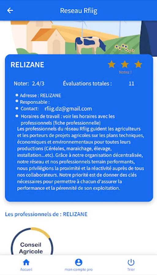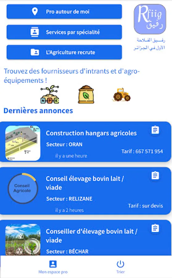 Rfiig est une application qui rassemble les agriculteurs et conseillers des cultures et élevages ainsi que les fournisseurs d'intrants agricoles.