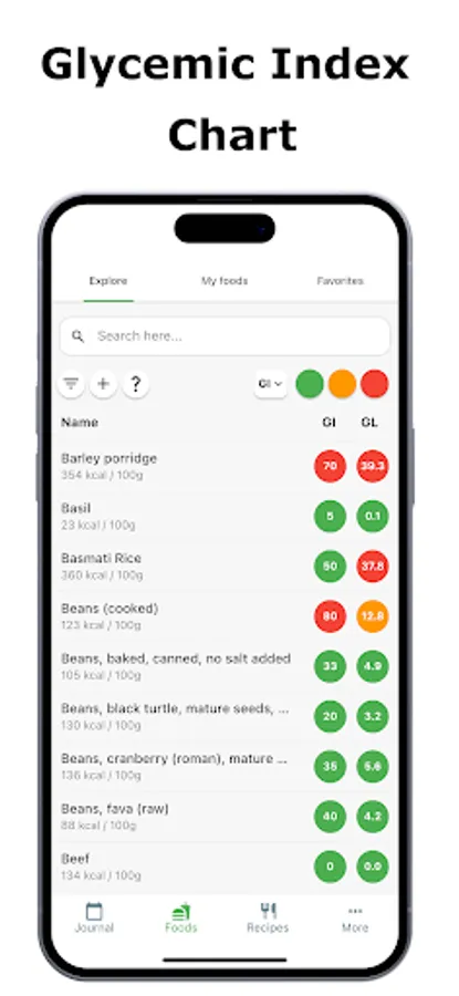 Introducing the ultimate glycemic index app for those looking to maintain a healthy lifestyle! The app features a comprehensive glycemic index & load chart, making it easier for you to understand the impact of the foods you eat on your blood sugar levels. With a glance, you'll be able to see which foods are low-GI and high-GI, allowing you to make informed choices.
