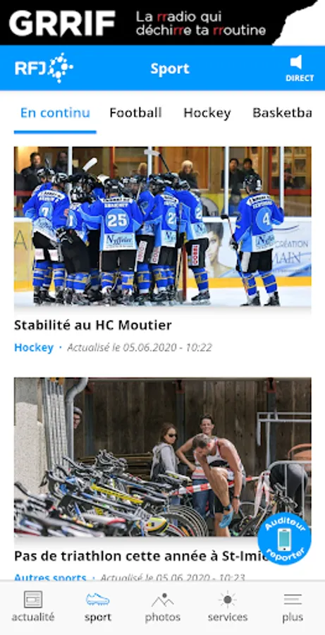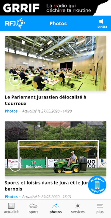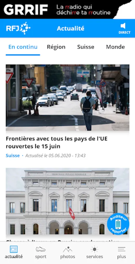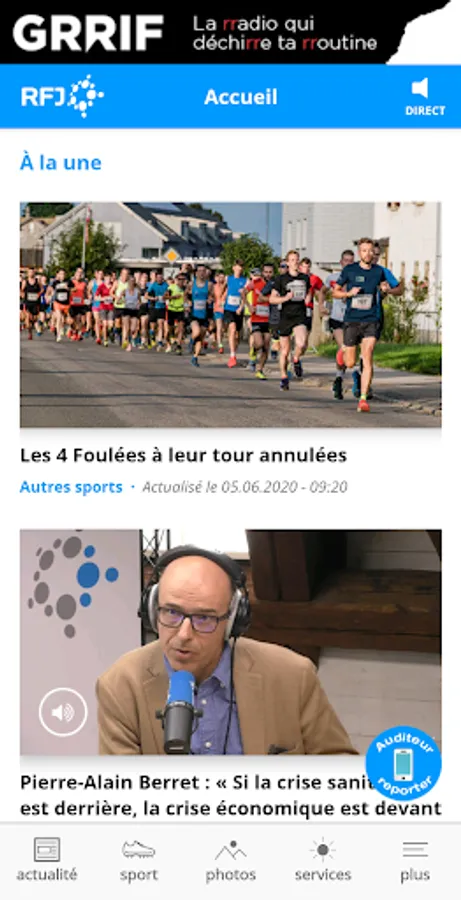 On the RFJ app, you can find streaming radio and its pop / rock music, as well as all the regional information with photos and videos, as well as the essentials of sport and national and international events. Discover the new push alerts so you don't miss any news from the region. Also take advantage of regional services such as the weather, used vehicles, births, agenda, cinema program, etc.