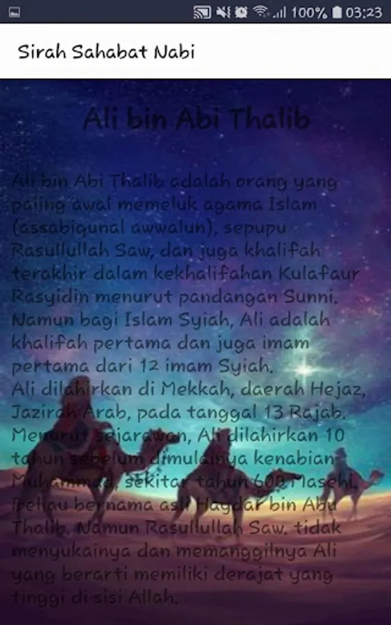 Learning application of the Prophet's sirah sirah is an application that explains about everything about the Prophet's sirah sirah. This application is expected to help everyone in studying the sirah of the Prophet's friends well.