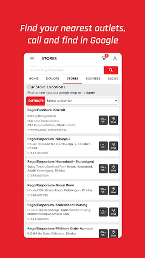 STORES- Find our outlets selecting your districts, their Google locations and contact numbers.